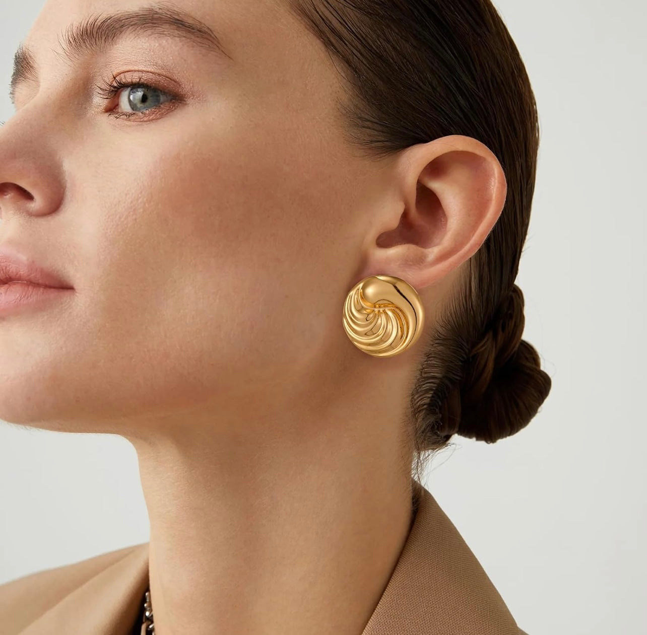 Gold Swirl Statement Stud Earrings – Vintage-Inspired Elegance